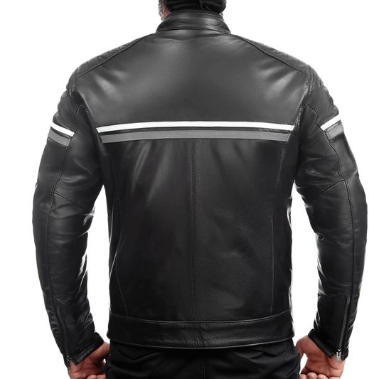 Turbo Men Black Leather Motorcycle Jacket