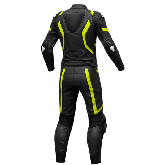 Top-Grain Leather Motorcycle Race Suit – Black/Green