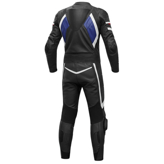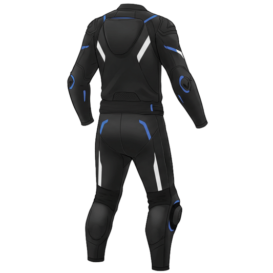Men's Premium Motorcycle Leather Suit - Black/Blue