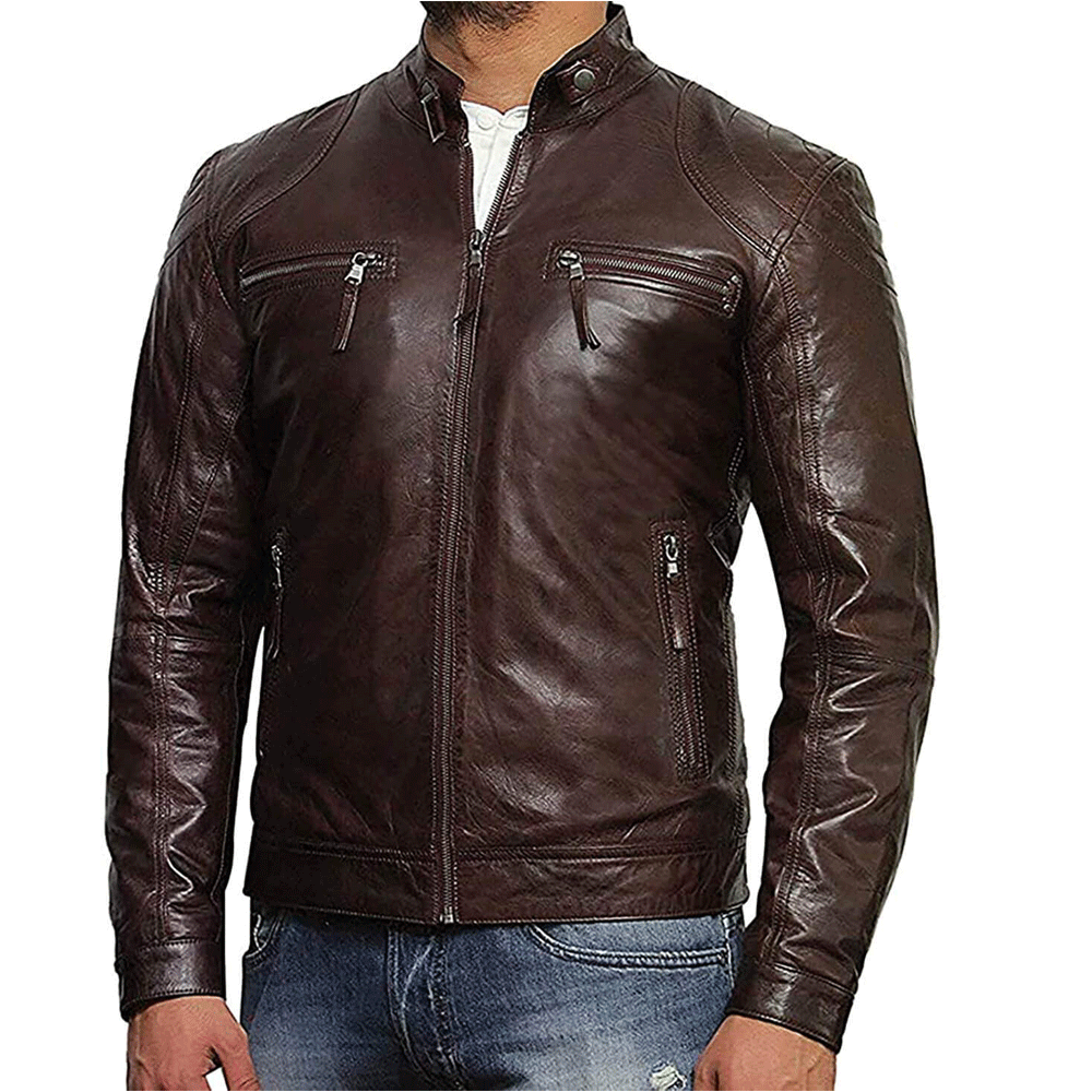 Turbo Men Leather Motorcycle Jacket