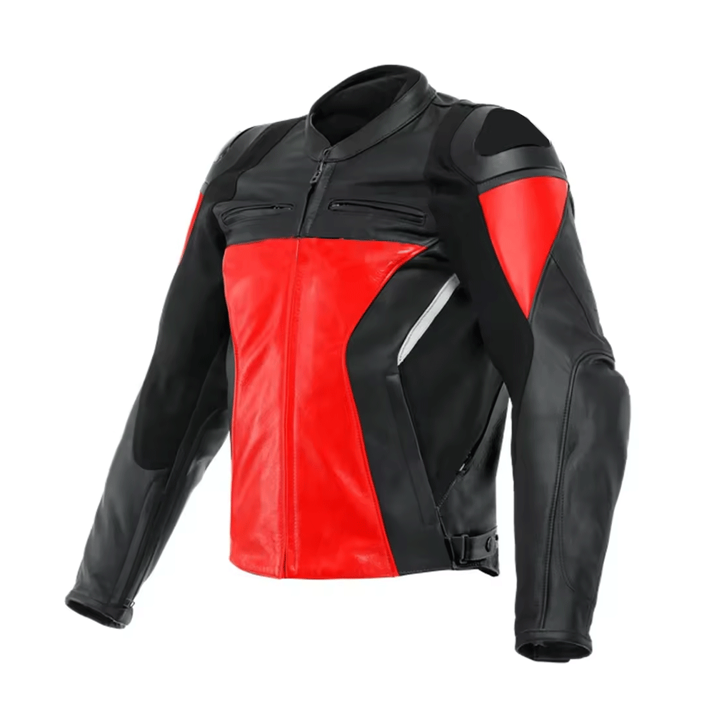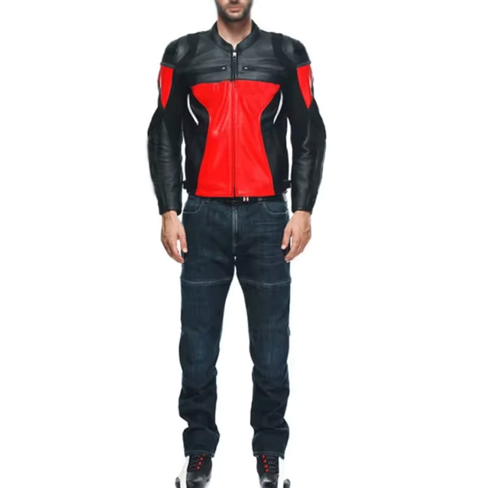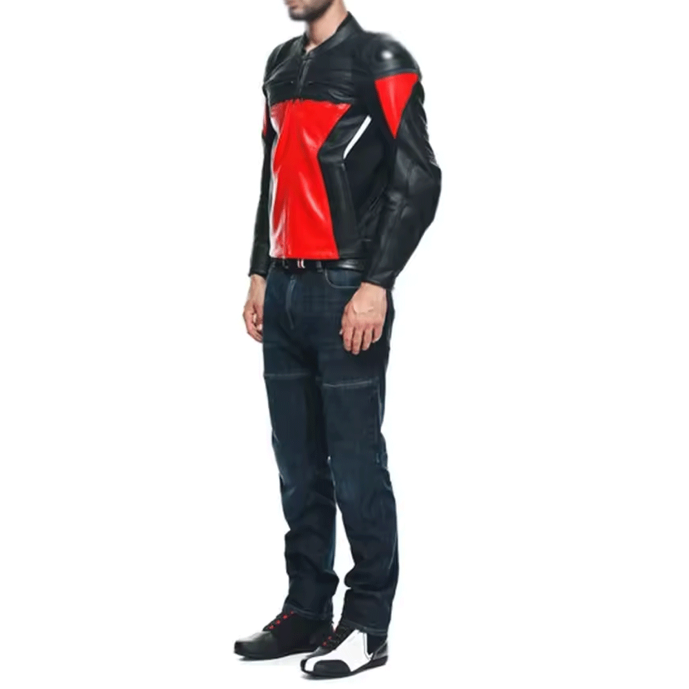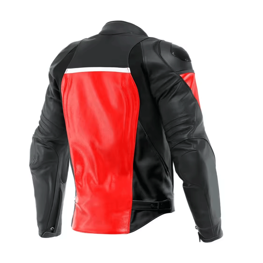 Made from durable 1.4-1.6mm full cowhide leather and accented with contrasting cowhide panels, this jacket offers unparalleled toughness and style. The high-grade 1.2-1.3mm leather ensures a balance of flexibility and resilience for every ride.